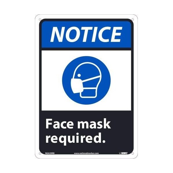 Safety Sign, NOTICE FACE MASK REQUIRED, Rigid Plastic 050, 14 H x 10 W in