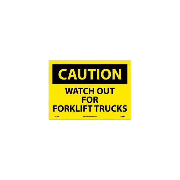 SAFETY SIGNS, VINYL 10"H X 14"W, CAUTION WATCH OUT FORKLIFT TRUCKS SAFETY SIGNS BRIGHTLY COLORED, EASY TO READ SIGNS HELPS COMPLY WITH OSHA STANDARDS. CAUTION WARN AGAINST POTENTIAL HAZARDS AND UNSAFE PRACTICES. TEXT ON SIGN: CAUTION - WATCH OUT FOR FORK LIFT TRUCKS