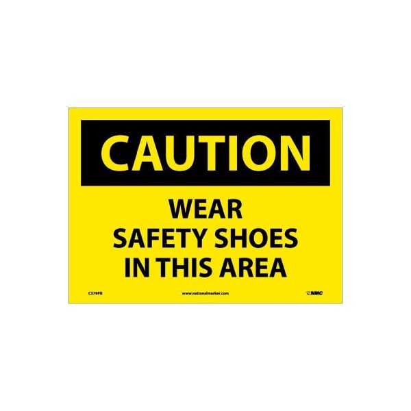Safety Signs - Caution Wear Safety Shoes - Vinyl 10"H X 14"W