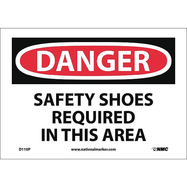 Sign, Danger Safety Shoes Req In This Are, 7 in Height, 10 in Width, Pressure Sensitive Vinyl