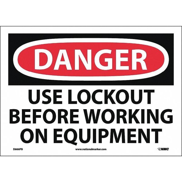 Nmc Sign, Danger Use Lockout Before Working, 10 in Height, 14 in Width, Pressure Sensitive Vinyl D666PB