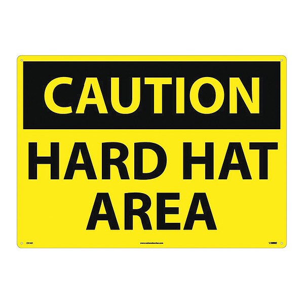 Sign, Large Format Caution Hard Hat Area, 20 in Height, Aluminum, Rectangle, English