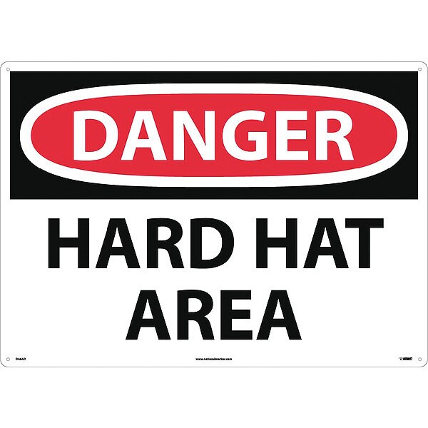 Sign, Large Format Danger Hard Hat Area, 20 in Height, Aluminum, Rectangle, English