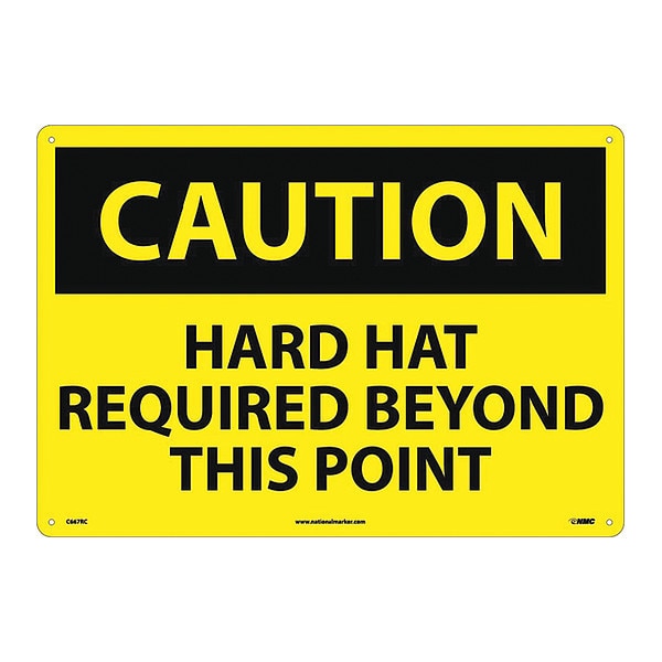 Sign, Lg Fm Caution Hard Hat Required, 14 in Height, 20 in Width, Rigid Plastic
