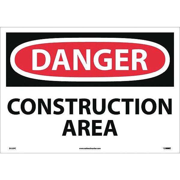 Nmc Sign, Lrg Form Dangr Construction Area, 14 in Height, 20 in Width, Pressure Sensitive Vinyl D132PC