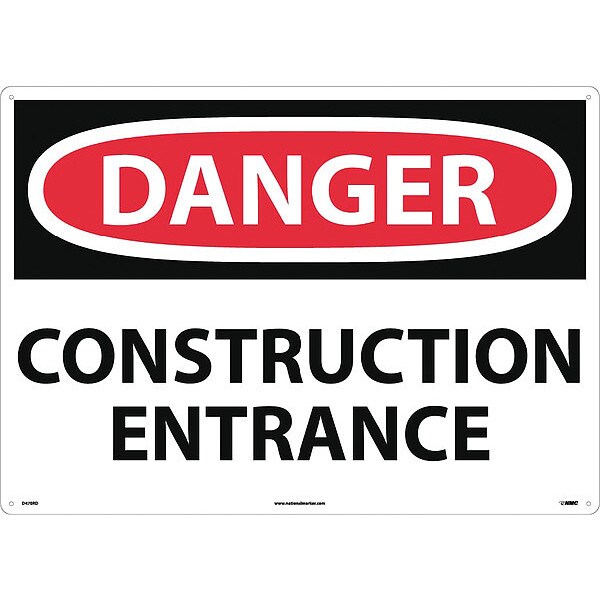 Sign, Lrg Form Dangr Construction Entranc, 20 in Height, Plastic, Rectangle, English