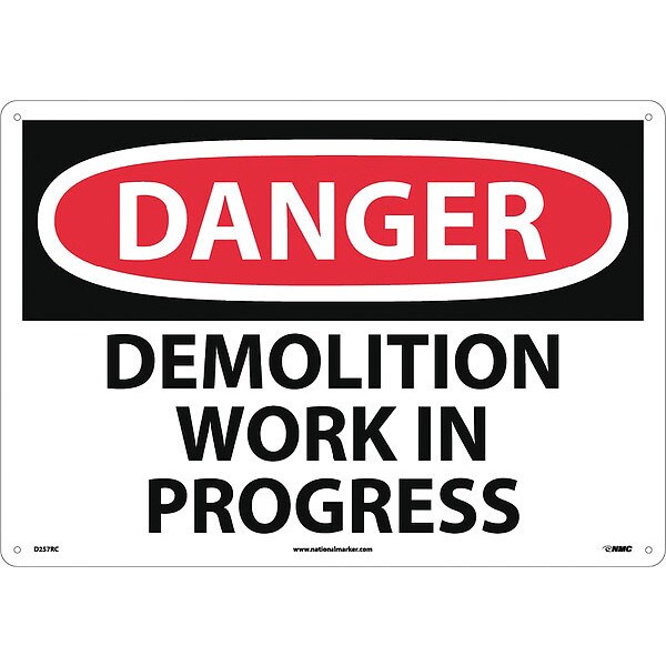 Nmc Sign, Lrg Form Dangr Demolition Work In P, 4 in Height, 20 in Width, Rigid Plastic D257RC