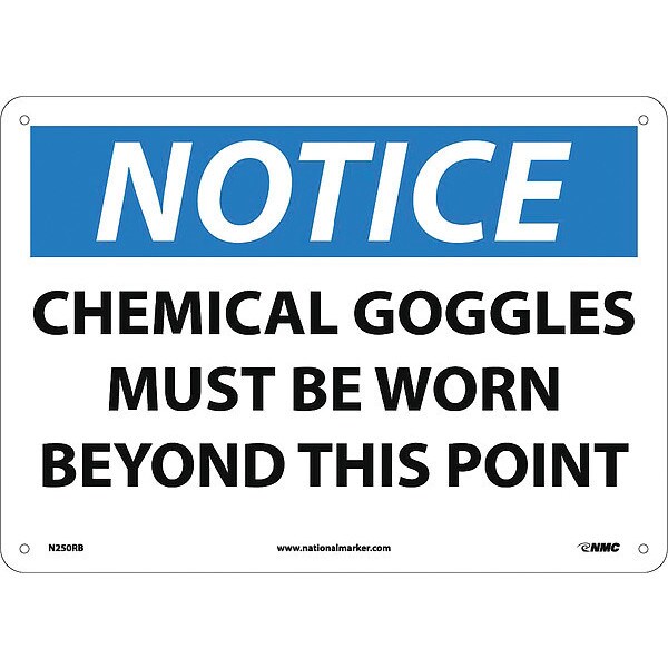 Sign, Notice Chmical Goggles Must Be Worn, 10 in Height, 14 in Width, Rigid Plastic (Discontinued)