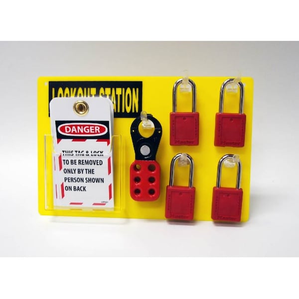 (1) Board, (4) Padlocks, (2) 1" Hasps, (1) 10-pack of Tags