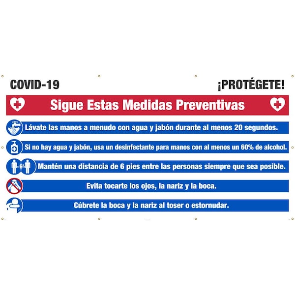 COVID-19 Protect Yourself, 5' X 10' Mesh Banner W/ Grommets, Spanish