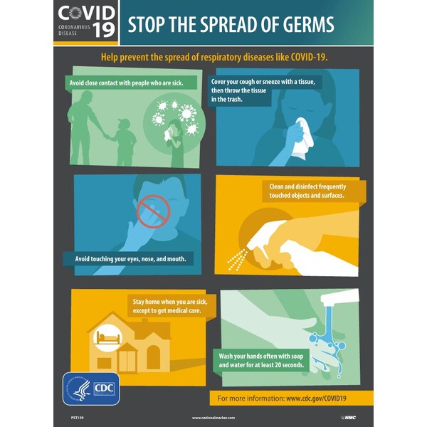 Stop The Spread Of Germs, English, 24X18 Vinyl Poster