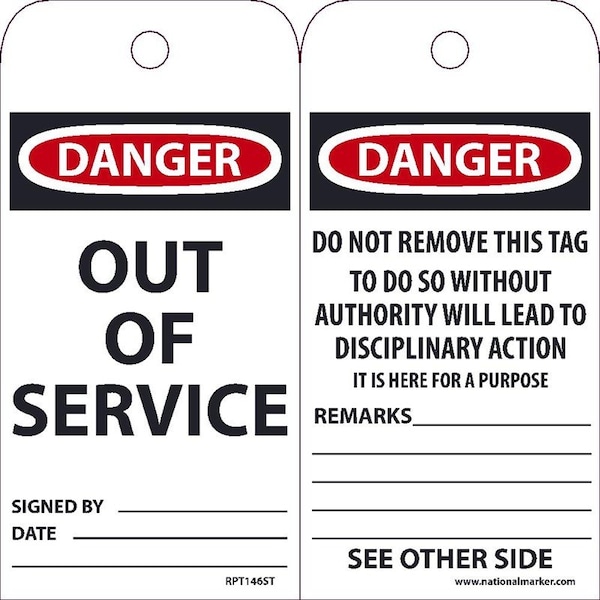 NATIONAL MARKER TAGS, OUT OF SERVICE, 6X3, RPT146ST100