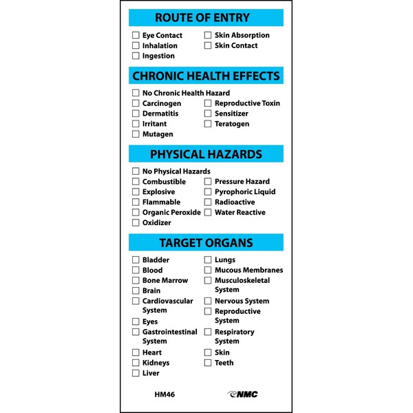 Target Organ Effective Label, Pk10, Package Quantity 10