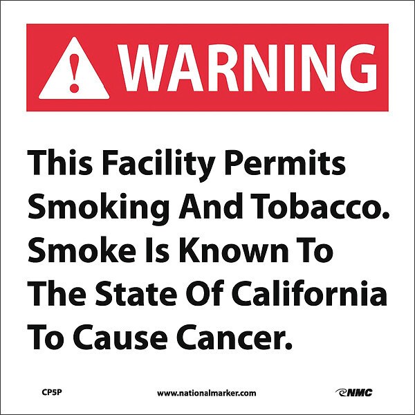 This Facility Permits Smoking California Proposition 65, CP5P (Discontinued)