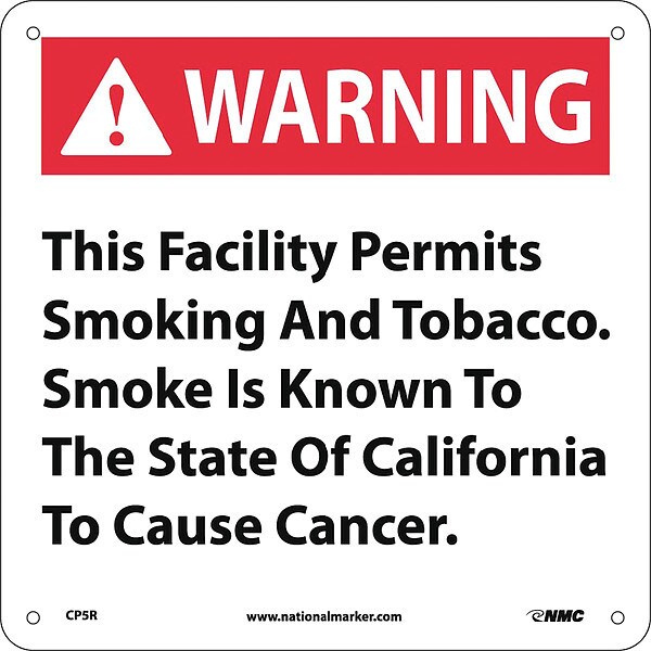 This Facility Permits Smoking California Proposition 65, CP5R (Discontinued)