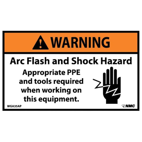 Warning Arc Flash Hazard Label, Pk5, WGA35AP