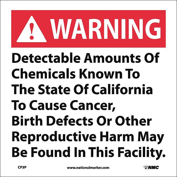 Warning Detectable Amounts Of Chemicals California Proposition 65, CP3P (Discontinued)