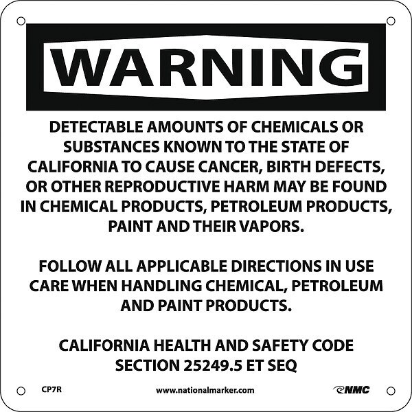 Warning Detectable Amounts Of Chemicals California Proposition 65, CP7R (Discontinued)