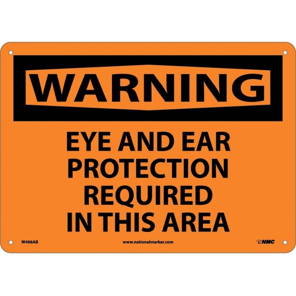Warning Eye And Ear Protection Required, 10 in Height, 14 in Width, Aluminum