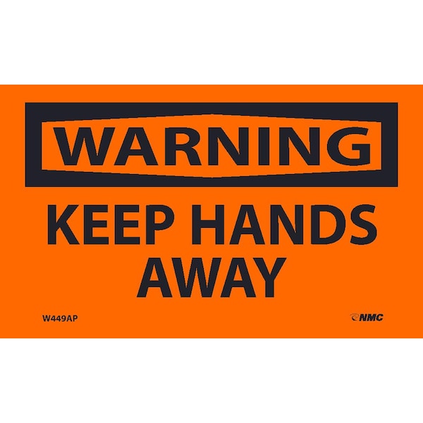 Warning Keep Hands Away Label, Pk5, 3 in Height, 5 in Width, Pressure Sensitive Vinyl