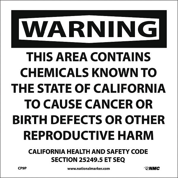 Nmc Warning This Area Contains Chemicals California Proposition 65, CP9P CP9P
