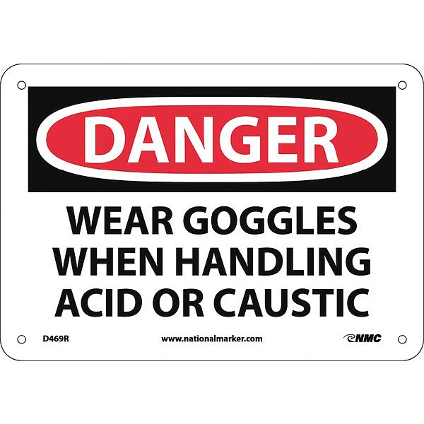 Wear Goggles When Handling Acid Or.., 7 in Height, 10 in Width, Rigid Plastic (Discontinued)