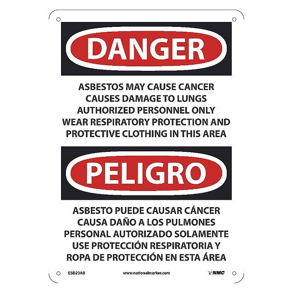 Peligro Asbestos May Cause Cancer Causes . . . Only Wear Respiratory Protection and Protective Clothing In This Area (bilingual)