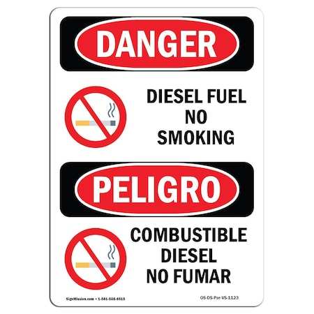 OSHA, Diesel Fuel No Smoking Bilingual, 14in X 10in, 10" W, 14" L, Spanish, OS-DS-D-1014-VS-1123