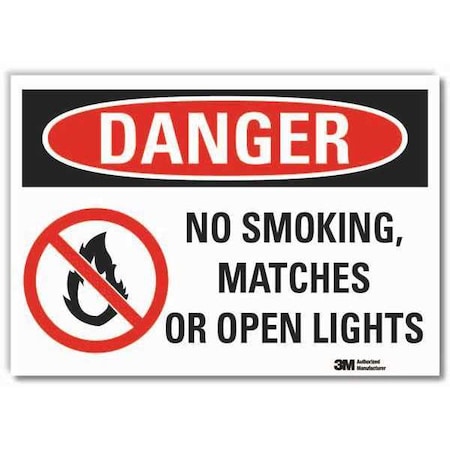 Danger No Smoking Sign, 5 in H, 7 in W, Reflective Sheeting, Horizontal Rectangle, U3-1522-RD_7X5