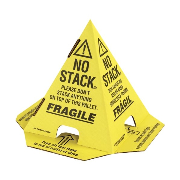 Yellow with Black Print Pallet Cones -English, French & Spanish Stops double stacking of freight shipments to help reduce damage. Quickly strap or tape to the top of the pallet. Pallet cone size is 8” x 8 x 10"
