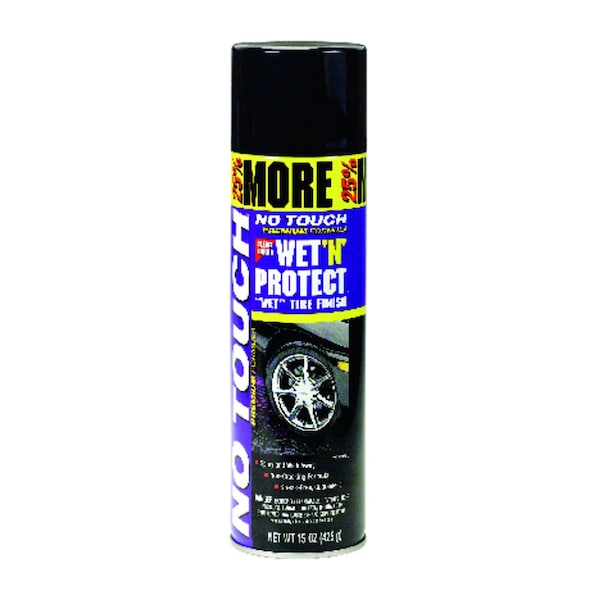 No Touch the originator of one step tire care brings you No Touch “Wet Look” Wet’N’Protect Tire Finish the very best for your tires. Wet - formula produces an extra high-gloss shine. Protect - prevents cracking and swelling. Unlike other “wet look” products this special formula will not harm or crack tires. Simply spray on and watch the shine come through giving your tires a beautiful wet look that lasts and lasts.