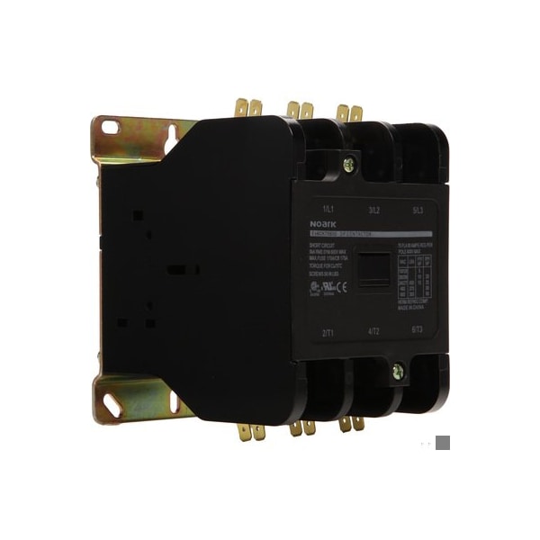 Definite-purpose (DP) contactor - NOARK (Ex9CK series) - 3-poles (3P; 3NO) - 90A (FLA) rated current - 24Vac (50/60Hz) coil - Lug connection for line and load sides + Dual FASTON Quick Connect spade connectors (2 connectors per pole) - 60HP (600Vac; 3-phase) rated power - Direct On Line (DOL) / FVNR (Full-Voltage Non-Rv.) - equivalent to 1311696