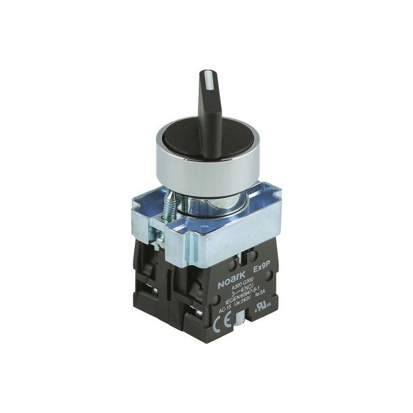 Selector switch / SSw. - NOARK (Ex9PB series) - Black handle - Knob operator (2-positions) - Maintained / stay-put / latched - 1NO contact - Metallic alloy body / Chrome-plated bezel - IP40 - equivalent to 1200503