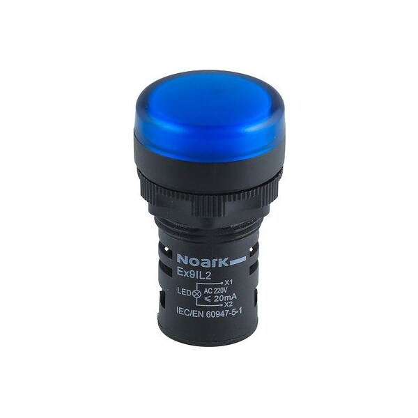 Compact pilot indicator light with LED - full-voltage input - NOARK (Ex9IL series) - Blue - 22mm (7/8") round curved / domed - Plastic body and cap - Supply voltage 24Vac / 24Vdc - IP65 - equivalent to 1200719