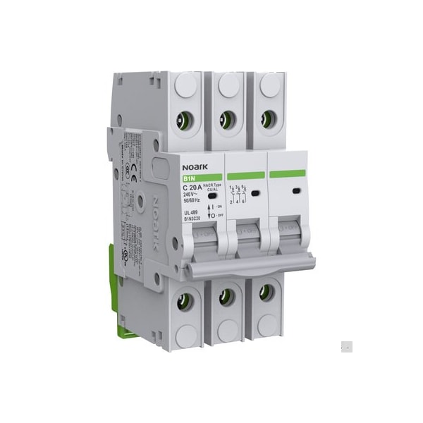 Miniature Circuit Breaker (MCB) - UL 489 - NOARK (B1N series) - 30A rated current - D-curve - 3-poles (3P) - 10kA (240Vac) interrupting rating - 240Vac rated voltage - box lug connections - DIN rail mounting (35mm width) - equivalent to 1000191