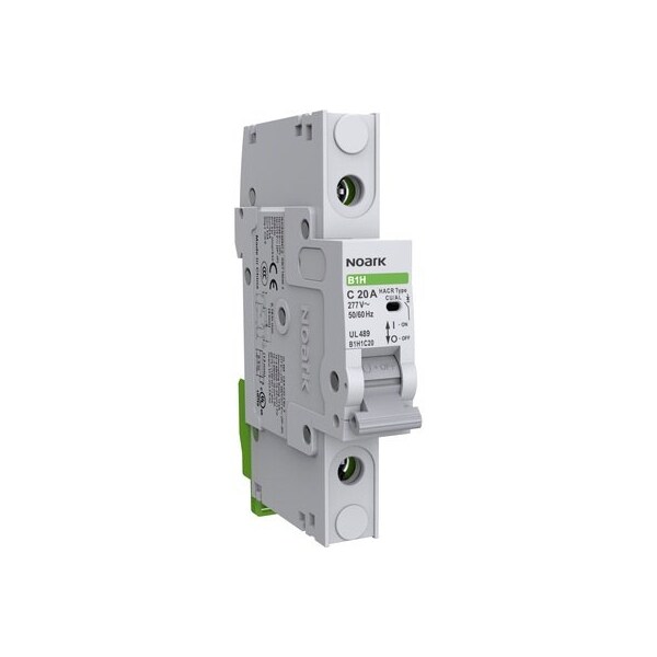 Miniature Circuit Breaker (MCB) - UL 489 - NOARK (B1H series) - 20A rated current - C-curve - 1-pole (1P) - 10kA (120Vac) / 10kA (240Vac) interrupting rating - 277Vac/480Vac (Y) rated voltage - box lug connections - DIN rail mounting (35mm width) - equivalent to 1000750