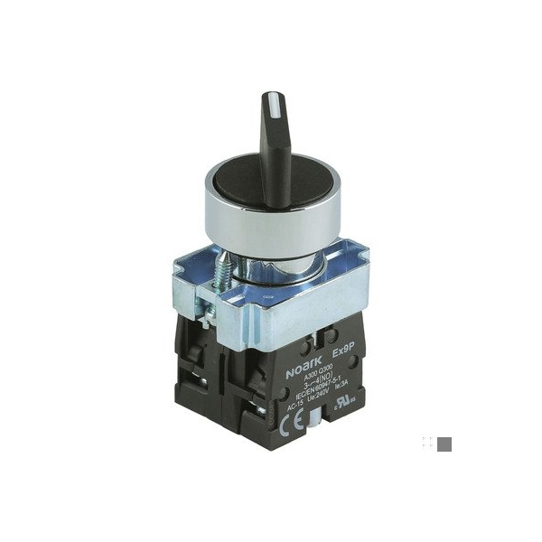 Selector switch / SSw. - NOARK (Ex9PB series) - Black handle - Knob operator (2-positions) - Spring-return from right position to left - 1NO contact - Metallic alloy body / Chrome-plated bezel - IP40 - equivalent to 1200508