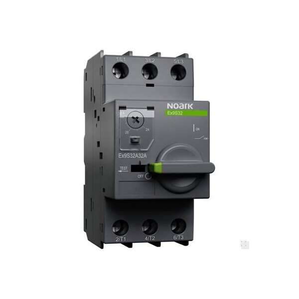 Thermal-magnetic Manual Motor Starter (MMS) / Branch protector - NOARK (Ex9S32 series) - 1A...1.6A current setting range - Interrupting capacity 65kA (type E; 240Vac; 480Y/277Vac) - Rotary handle operation - 3-poles (3P) - M4 slotted head screw connections - Thermal-Magnetic (adjustable) - IP20 - compatible with Ex9S32 mtr. starter - equivalent to Ex9S32A16A / 1600051