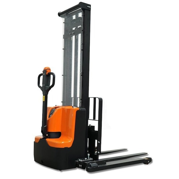 Full-Electric Stacker, Leak-proof pump & cylinder, Adjustable Forks & Straddle-legs, Capacity 2200lbs, Max. Lift Height 138".