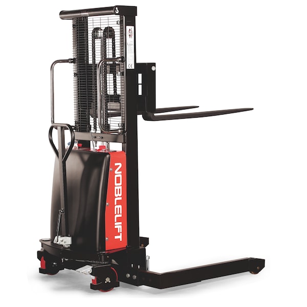 Semi-electric Stacker (Power-Lift only), Leak-proof pump, Adjustable Forks & Straddle-legs, Capacity 2200lbs, Max. Lift Height 63", Locking Steering Casters and Polyurethane wheels all-around, Premium Handle with Polymer Grip coating.