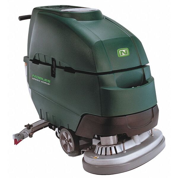 Walk Behind Floor Scrubber, Recovery Tank Capacity 27 gal, Deck Style Disc, Power Source (4) 6V, 235Ah Batteries, Cleaning Path 24 in, Includes Side and Rear Squeegees, Batteries and Charger, Solution Tank Capacity 22.5 gal, Brush Motor (2) 0.75 HP, Features 1-Button Quick-Train Controls and No-Tool Squeegee Change For Easy Operator Training