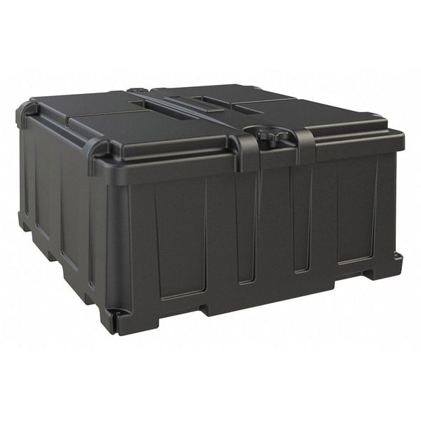 Battery Box, Battery Group Type Commercial Vehicles, Fits Battery Size Group Group 8D, Minimum Heat Resistance -20 Degrees F, Removable Lid Yes, Closure Type Lock-Down Knobs, Battery Box Material Plastic, Battery Box Color Black, Inside Length 21 in, Inside Width 23 in, Inside Height 10 5/8 in, Outside Length 26 7/16 in, Outside Width 24 7/16 in, Outside Height 12 1/2 in, Fluid Compatibility Acid, Resistance Properties UV Resistant; Oil Resistant; Gas Resistant