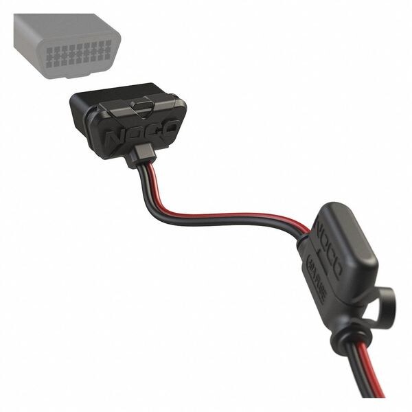 OBDII Connector, Color Red/Black, Connection Type Bolt, Connection Material Copper, Housing Material Plastic, Insulation Material Rubber, Features Quick Connect to Charger, Attachment Type Top, Gauge 16 ga, Length 24 in, Polarity Neutral