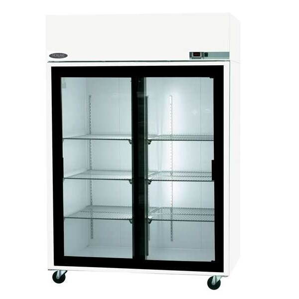 Refrigerator, Application - Laboratory Refrigerator/Freezer Pharmacy, Laboratory Refrigerator/Freezer Style Upright, Refrigerator Capacity (Cu.-Ft.) 49 cu ft, Refrigerator Temperature Range (C) 34 Degrees to 50 Degrees , Overall Depth 33 in, Overall Height 6 ft 7-5/8 in, Overall Width 4 ft 7 in, Defrost Automatic, Refrigerator Temperature Range (F) 36 Degrees to 50 Degrees , Amps 10.7, Hz 60, Voltage 120 V, Color White, Door Hinge Sliding, Door Type Sliding Glass, Door Material Glass