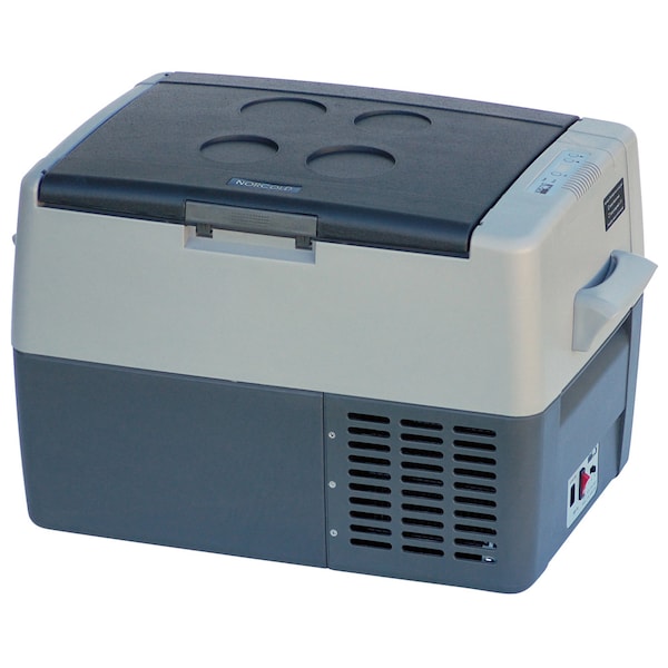 Portable Refrigerator/Freezer - 42 Can Capacity - 12VDC. Norcold compressor refrigerator/freezerWhen your food and drink needs to stay cold - even on the hottest summer day! Better than a cooler! No Ice!, Features: Capacity: 30 Liters/1.06 Cu Ft/42 Cans, CFC-free insulation foam and refrigerant, Hermetically Sealed Compressor with built-in low voltage protection, Electronic Temperature Control Panel displays the internal temperature and allows you to set desired temp, Indicator light alerts you to installation issues, Separate refrigerator-only section prevents freezing of select itemsBattery protection with three settable levels prevents battery drain and automatically turns back on when voltage returns, Easy-to-clean, removable wire basket for convenience, Stainless-steel interior prevents stains and improves cooling, Durable and corrosion-proof plastic exterior with heavy-duty removable handles, Included DC cord with cigarette lighter plug, Optional adaptor allows AC Operation, Optional carrying case helps protect refrigerator, Easily reversible and removable Hinge Lid,