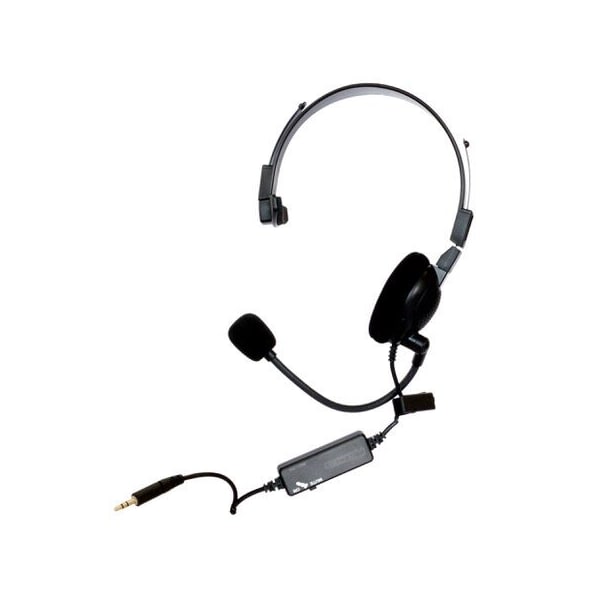 Microphone: 1 600 Ohm 2 Boom 3 Mono 4 100 10K Hz 5 Sensitivity: -28dB 6 S/N ratio: 60dB 7 Microphone on/mute switch 8 Active Noise Control microphone Headphone: 1 32 Ohm 2 Semi-open Monaural Headphone 3 50-20K Hz 4 82 dB Cable: 1 8 feet with quick disconnect 2 In line Microphone ON/MUTE switch Connections: 1 3.5 mm Plug