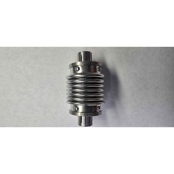 Bellows, Split Hub. Material: 303 Stainless Steel. Order Number CGS-G2-11. Material 303 Stainless Steel. Bore 1.12480. Bore 2.12480. Hub Diameter 1.18800. Hub Diameter 2.18800. Hub Clamp 1 BKS-A1-1. Hub Clamp 2 BKS-A1-1
