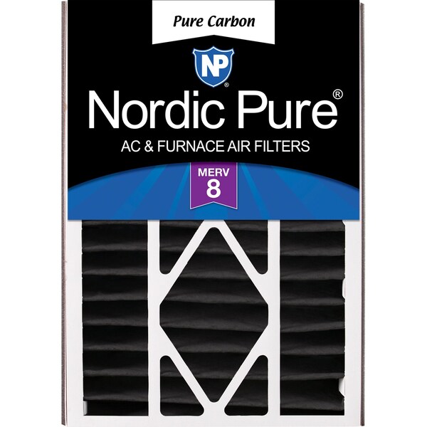 Important Note: Almost ALL furnace filters have a different actual size than the nominal size printed on the air conditioner filter. It's best if you measure your air filter for the EXACT size and compare it to our actual size - and then you can be sure your A/C air filter fits! With the 4in and 5in air filters there is a wider variance between the nominal and actual size depending on the manufacturer. We also carry 4-3/8 and 5-1/4 inch depth filters, this is why we ask you to compare the exact dimensions. Nordic Pure 16x25x5 Pure Carbon Pleated Odor Reduction Air Bear Replacement MERV 8 air filters measure an actual depth of 4-7/8in. Each time air passes through a Nordic Pure pleated furnace filter, lint, household dust, pollen, dust mites, pet dander, smoke particles, virus carriers, bacteria, mold spores and other contaminants are removed. All Nordic Pure pleated HVAC filters are manufactured using a heavy duty, moisture resistant beverage board frame. The frame has 2 strips of foam tape on 2 sides. There is a metal mesh support grid bonded to the pleats for extra support. Our AC filter media prevents the growth of bacteria or mold, resulting in a much healthier living environment. Pure Carbon Pleated Odor Reduction Air Bear Cub Replacement furnamore...