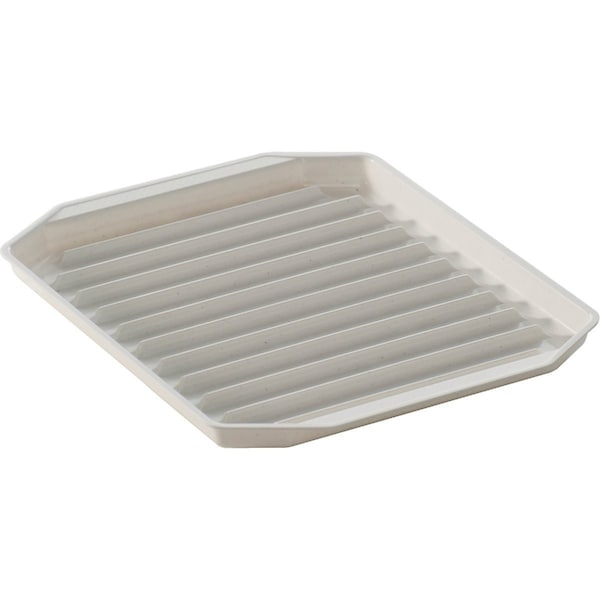 Specially designed microwavable rack keeps bacon elevated so fat drips off leaving you with a healthier breakfast side. BPA and Melamine-free. Great for bacon sausage and hot dogs. Size: 10 x 8 x 3/4. Dishwasher safe.
