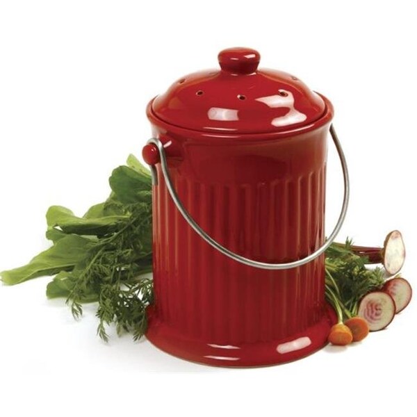Norpro 1 Gallon Red Ceramic Compost Keeper Crock 93R (Discontinued)